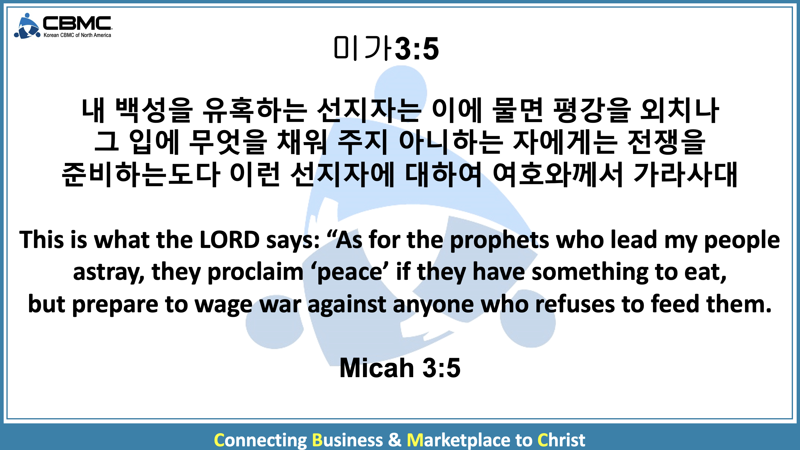 북미주 KCBMC 인사말